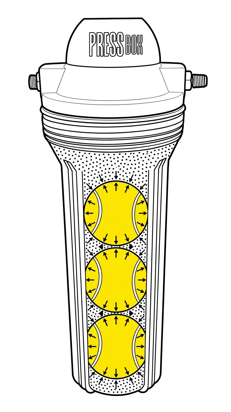 Con PressBox, tus pelotas estarán en un entorno de presión controlada, similar al que tenían cuando eran nuevas. Así conservarán su presión interna y evitarán perderla con el uso y el paso del tiempo.