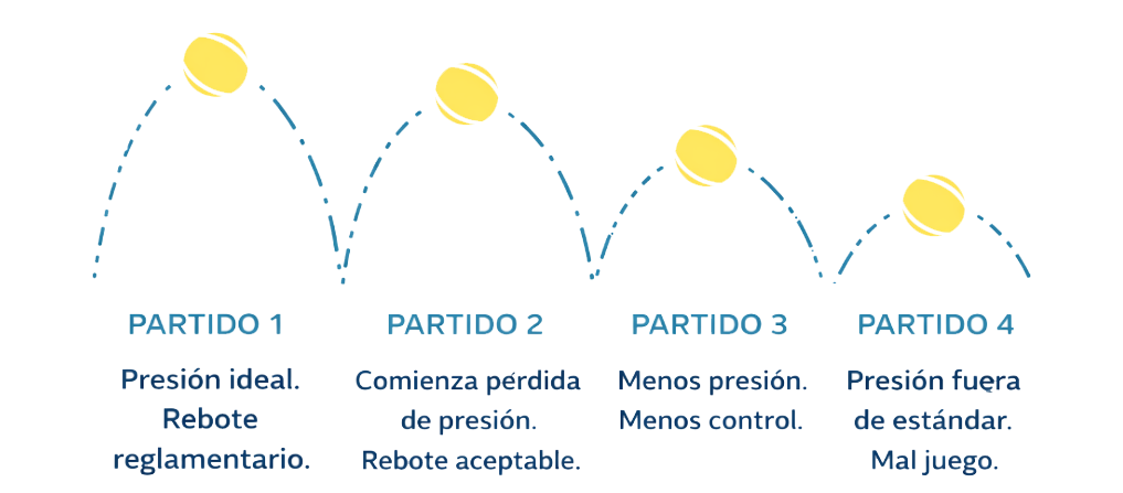 Con el tiempo, esta pérdida se hace evidente en la cancha, el rebote disminuye, la velocidad cambia y la sensación de juego ya no es la misma. Aunque por fuera puedan verse en buen estado, internamente han perdido presión, y su rendimiento deja de ser el de una pelota nueva.